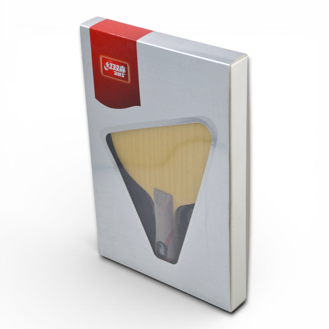 📍 DHS W965 Das Holz verfügt über integrierte gelbe und schwarze Kohlenstofffasern sowie heterogene Oberflächenmaterialien auf beiden Seiten (Vorhand Limba, Rückhand Ayous). Es hat die gleiche Struktur wie das von Ma Long verwendete W968 und weist im Wesentlichen die gleichen Leistungsmerkmale auf. Aufbauend auf dem W968 verbessert es die Ballkontrolle bei der Rückhand.