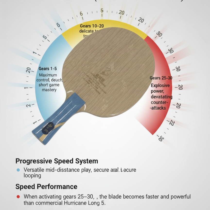 • When activating gears 25-30, the blade becomes faster and more powerful than the commercial Hurricane Long 5.