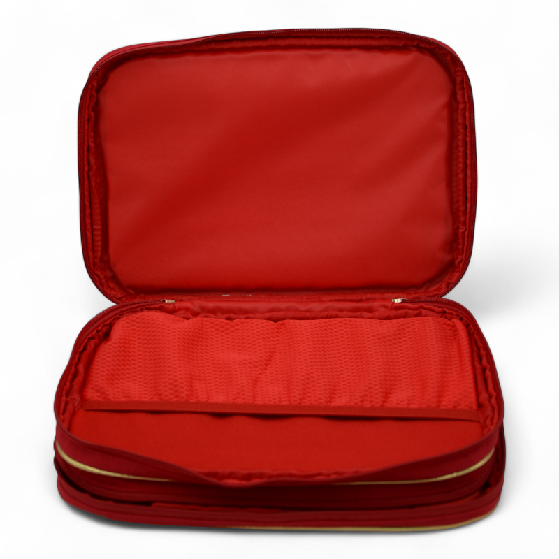 Bel étui à double compartiment, grande taille, couleur rouge, design élégant et très SPACIEUX, vous pouvez y ranger beaucoup d’accessoires !