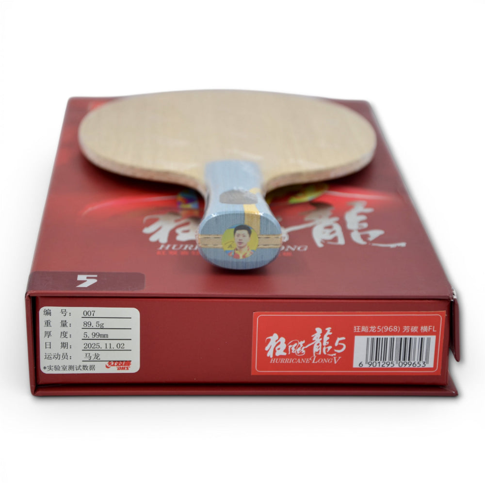 The DHS Ma Long W968 is a select, professional-grade version of the Hurricane Long 5 platform, engineered for explosive power with precise control. Its inner-carbon construction delivers long dwell time for heavy spin while maintaining the stability needed for modern close-to-table and mid-distance topspin play.It is full of strength and excels in arc performance, making it difficult for opponents to defend. Ma Long and many other top players from around the world use this blade.