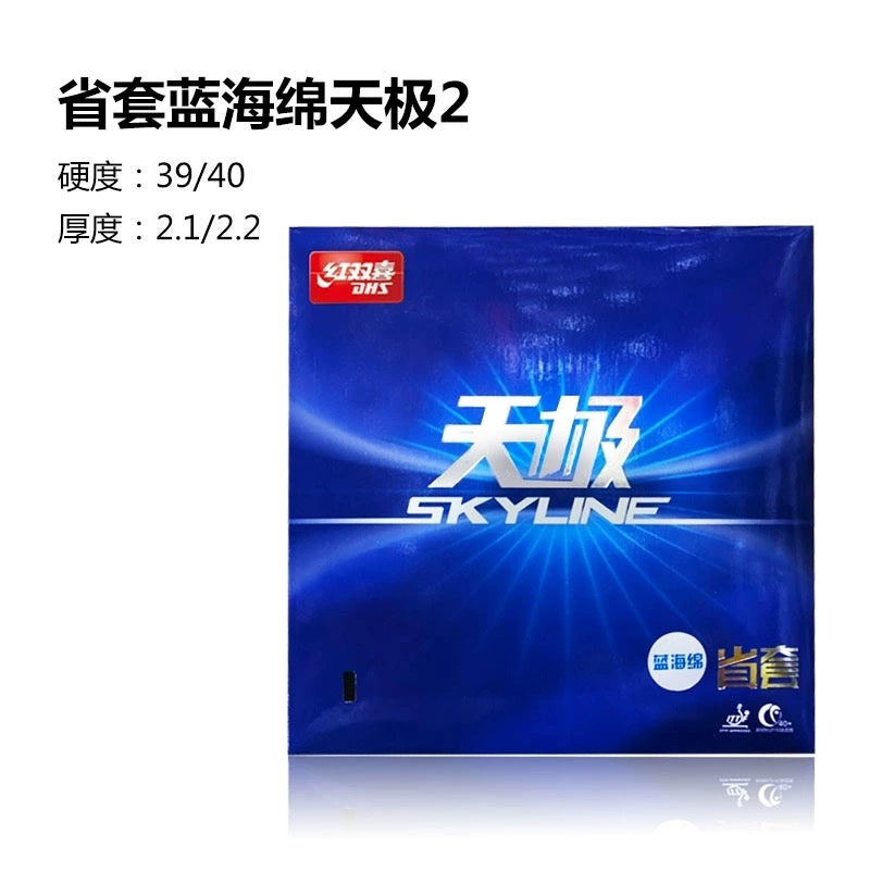 Compared to DHS Hurricane 3 and Skyline 3, Skyline 2 Provincial grade (Blue sponge) will have more feeling, less speed and more control, a more sticky surface, easier to block, easier to touch short and keep your services short.
